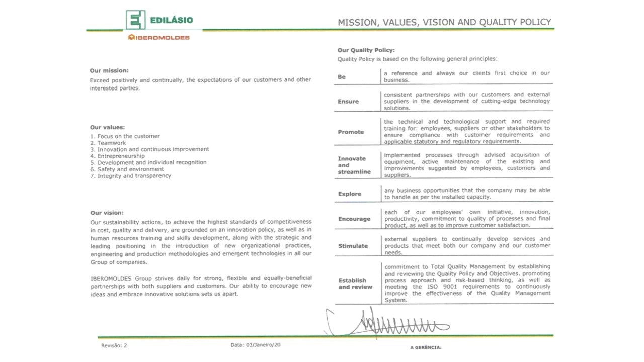 We understand quality in its broadest sense. As a philosophical driving force of the Company, oriented to the continuous satisfaction of needs and customers expectations.